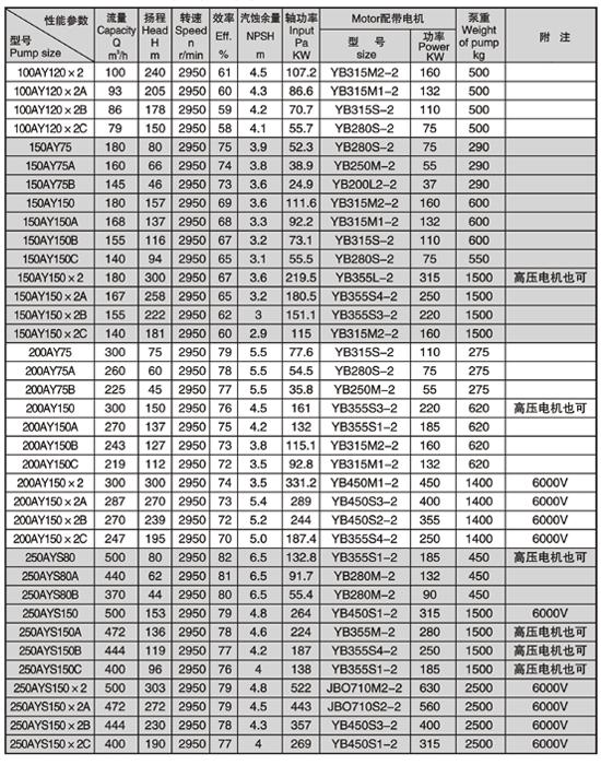 | ·應用 適用于輸送高溫高壓以及易燃易爆有毒的液體,廣泛用于石油精制、石油化工和化學工業(yè)及其他地方輸送不含固體顆粒的其他介質(zhì)。 ·設(shè)計特點 可分為單級單吸和兩級單吸懸臂式、單級雙吸懸臂式、單級雙吸和兩級雙吸兩支撐式、兩級單吸兩支撐式等六種。軸承有空氣冷、風扇冷和水冷三種,根據(jù)泵的不同使用溫度來選用。其中風扇冷尤為適用缺水或水質(zhì)差的地區(qū),安裝方式為水平中心線支撐。 ·軸密封 軟填料密封及各種滑環(huán)機械密封。 ·材料 鑄鐵、合金鋼及各種不銹合金鋼。 ·性能范圍 流量:2.5-600m3/h 揚程:30-330m 工作溫度:-45-420℃ ·性能參數(shù)表 |